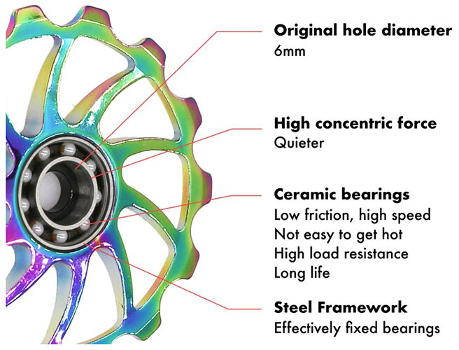 - Ceramic Bearing design for smoother shifting and less friction.